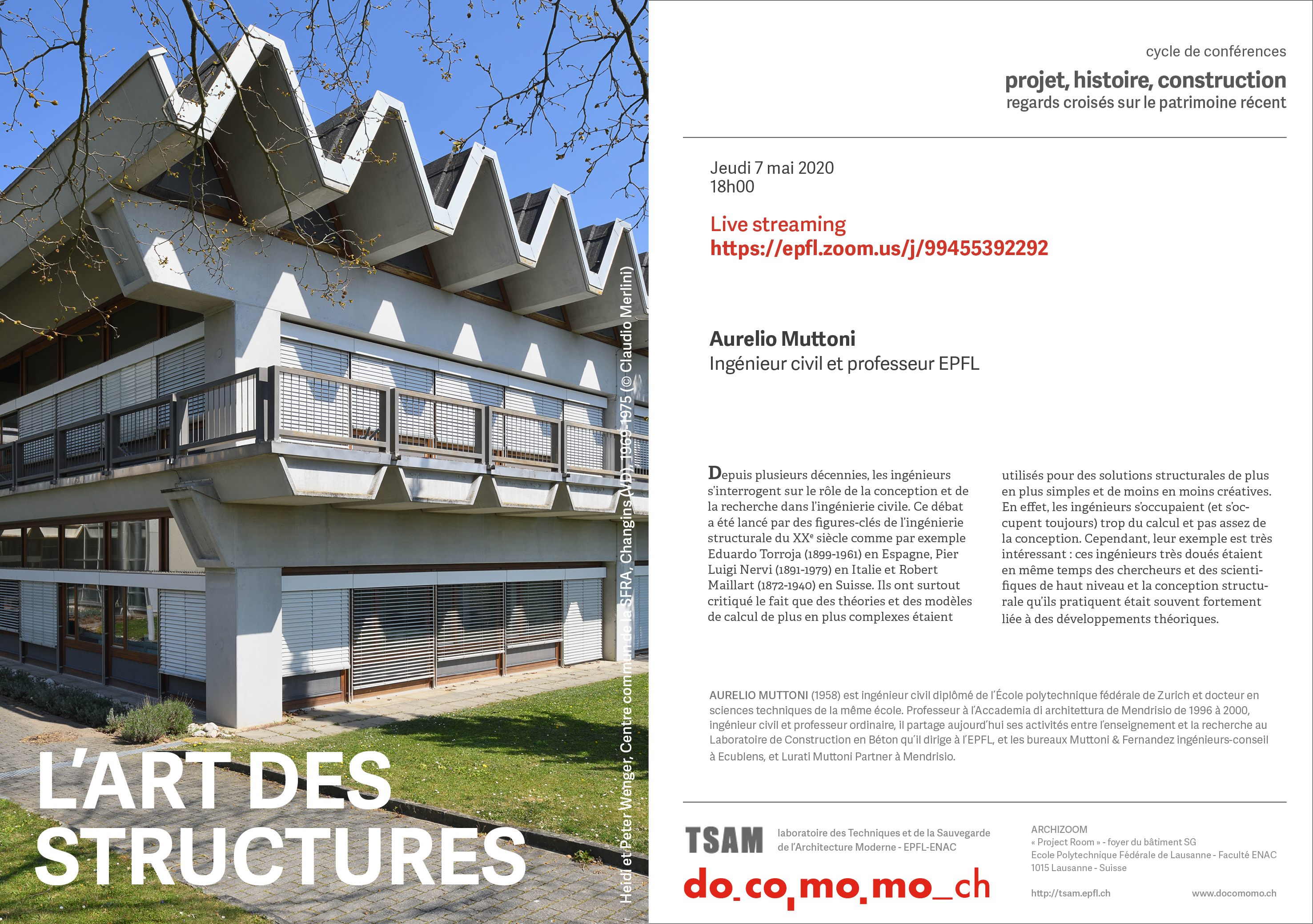 Docomomo Schweiz und das TSAM-Labor der EPFL organisieren einen interessanten Vortrag im Rahmen ihrer Veranstaltungsreihe.