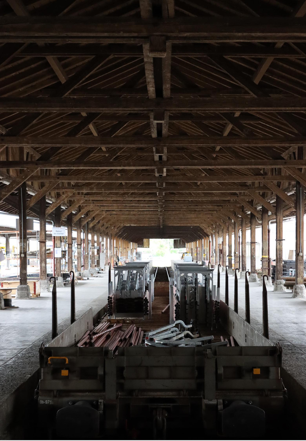 - Der Güterschuppen-Kernbau von 1914, mit einer Binderkonstruktion nach dem System Hetzer. 26 Joche, die angeblich von der Landesausstellung in Bern 1914 nach Biel transloziert wurden, spannen über einen Grundriss von etwa 18 m x 117 m.